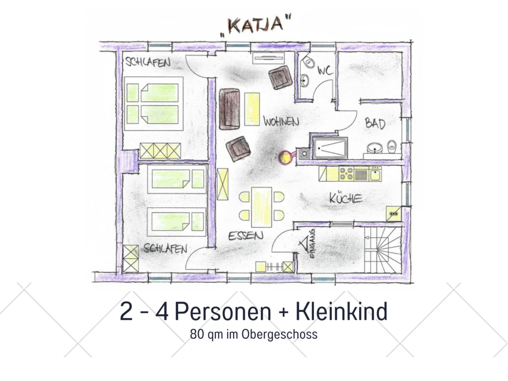 mit zwei Schlafzimmern, Duschbad und separatem WC in ruhiger Stadtrandlage – ideal als Ausgangspunkt von Radtouren, Wanderungen oder zum Strand.